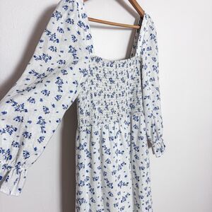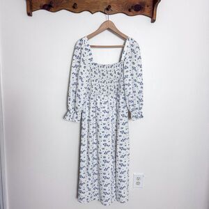House of Harlow 1960 Linen Smocked Bodice Floral Midi Dress,, size large
