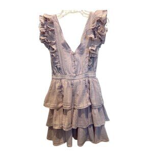 This House of Harlow 1960 women’s dress is a dreamy blend of boho flair and feminine detail. In a soft lavender-pink striped fabric, it features ruffled sleeves, a tiered skirt, and a stretchy elastic waist for a flattering fit. Whether for a spring brunch or a summer outing, this size medium dress adds effortless charm to your wardrobe. Features: • Ruffle sleeves and plunging V-neckline • Tiered skirt for a flirty silhouette • Elastic waistband for comfort and shape • Lightweight, breathable striped fabric Material: 100% Cotton Care: Machine Wash Cold With Like Colors Do No Bleach Tumble Dry Low Warm Iron If Needed #BohoStyleBeauty #HouseOfHarlowDress #EffortlessChicLook #TieredRuffleVibes #1187