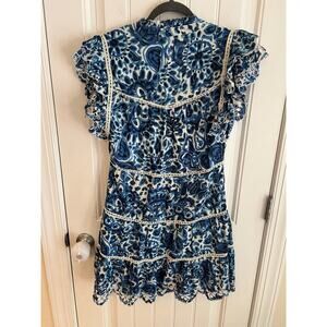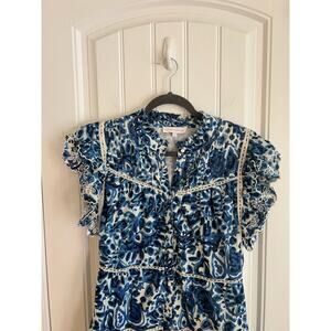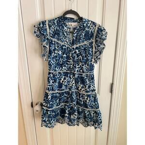 House of Harlow 1960 Melba Blue Floral Ruffle Button Front Dress Size M