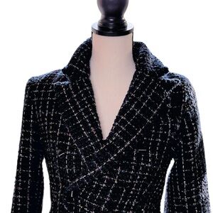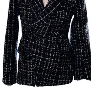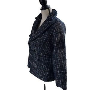 House of Harlow 1960 Metallic Tweed Double Breasted Blazer Plaid Navy | Sze S