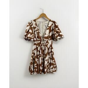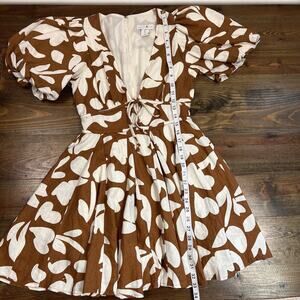 House of Harlow 1960 Mini Dress Puff Sleeve Tie Front Floral Linen Blend Size 0