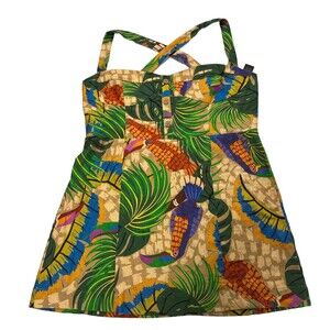 House of Harlow 1960 Mini Dress Womens Large Linen Blend Toucans Lined NWT