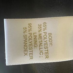 • Metallic fabric blend: 65% polyester, 35% metallic