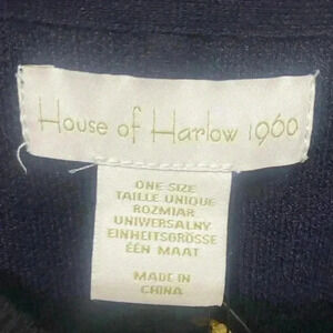 Trendy and perfect for the colder weather. Soft and oversized poncho. Navy blue with contrasting striped detail. V neck.