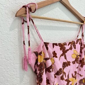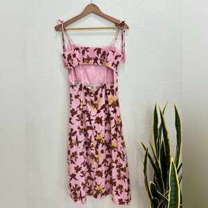 House of Harlow 1960 Pink Floral Linen Midi Dress Size Medium