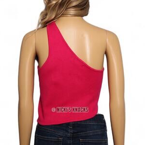 House of Harlow 1960 Pink Knit One Shoulder Crop Top Asymmetrical Hem Size M