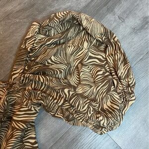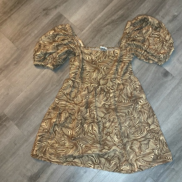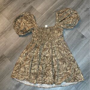 House of Harlow 1960 Puff Sleeve Mini Dress. Size S. 55% linen, 45% rayon. Bohemian like pattern. Square neckline.