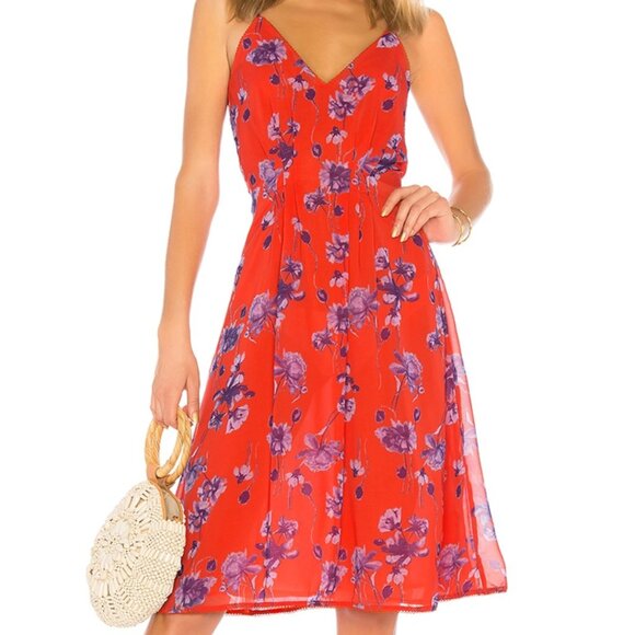 House of Harlow 1960 Red and Purple Floral Midi Dress