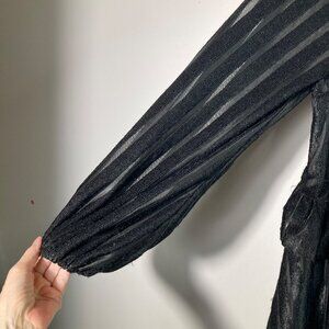 • Adelita black velvet like dress v neck puff sleeve