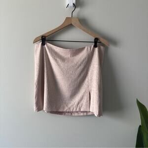 Chic blush pencil skirt with a subtle slit. Perfect for a sophisticated look.
