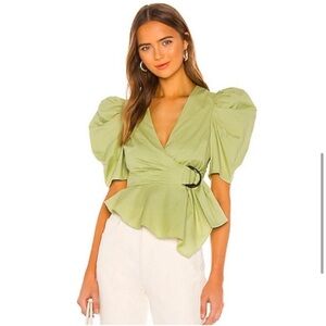 House of Harlow 1960 Revolve Jurie Puff Sleeve Green Blouse M NWT