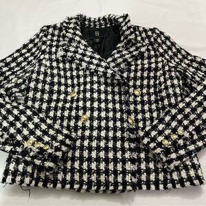 House of Harlow 1960 Revolve Plaid Tweed Fringe Double Breasted Blazer Size M