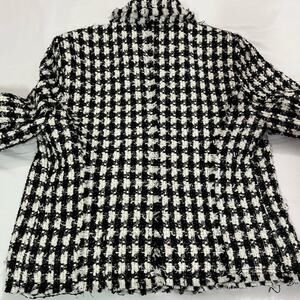 Style: plaid print, tweed, fringe, double breasted, blazer, office, career, professional, formal, evening, dinner, elegant, fancy, special occasion, Clueless, wool blend