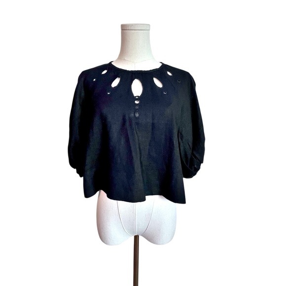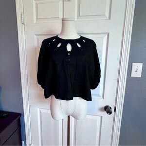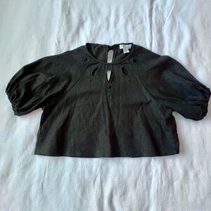House of Harlow 1960 Revolve black linen blend cut out top puff sleeve womens XS