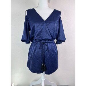 House of Harlow 1960 Revolve women's small navy bleu Celeste satin romper