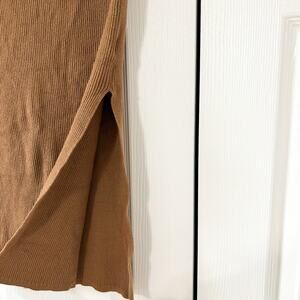 House of Harlow 1960 Ribbed Knit Collared Top & Midi Skirt Set Brown S EUC