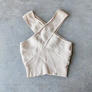 House of Harlow 1960 Ribbed Knit Cross Cross Halter Top size XS