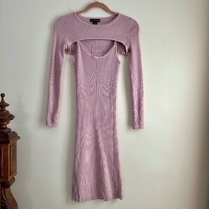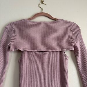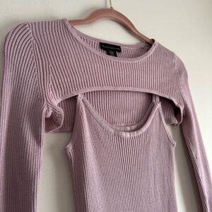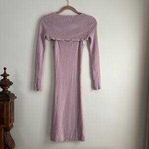 Description: Two piece set of a ribbed knit midi dress and what I believe is called a bolero or shrug. Stretchy. Adjustable straps on the dress. Both size XS