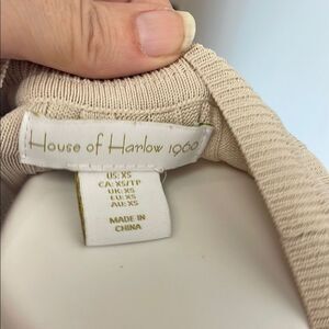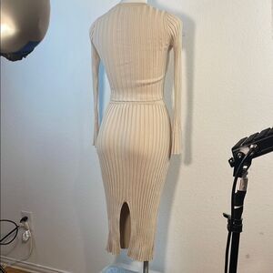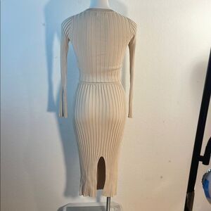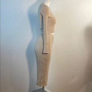 House of Harlow 1960 Ribbed Knit Sweater/Skirt Set Crop Bell Sleeves with round neckline and long skirt with slit on back bottom Color Beige / Cream nude Size XS