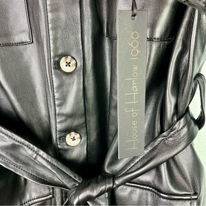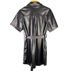 House of Harlow 1960 Sarai Black Faux Leather Belted Mini Shirt Dress with button front and pockets. Sash tie belt. Very nice quality soft faux leather, not plastic feeling. Brand new with tags. MSRP $179