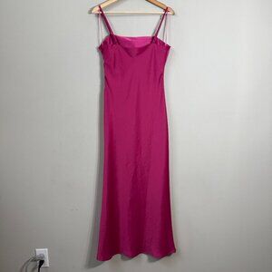 House of Harlow 1960 Satin Midi Slip Dress Women Medium Pink Slit Cocktail Party
