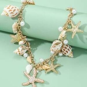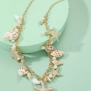 🔹️House of Harlow 🔹1960 Sea Shell Starfish Faux Pearl Collar 16" Necklace ✨️🐚