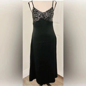 House of Harlow 1960 Sequined Black Satin Slip Dress Long New Prom Formal Gown