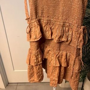House of Harlow 1960 Shimmer Smocked Tiered Mini Dress Small