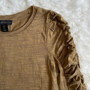 House of Harlow 1960 Shirt Ruched Long Sleeve Tee Bronze Olive S