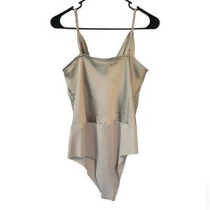 House of Harlow 1960 Silver Satin Draped Neck Bodysuit Size Large
