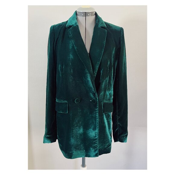 House of Harlow 1960 Sz S Jewel Green Velvet Dbl Breasted Blazer