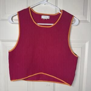 House of Harlow 1960 Tank Top Womens Medium Pink Orange Cropped Ribbed Y2K