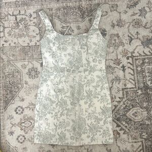 Elegant mini dress with floral pattern. Features a fitted silhouette and square neckline. Perfect for any occasion.