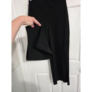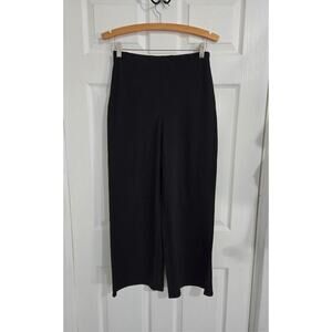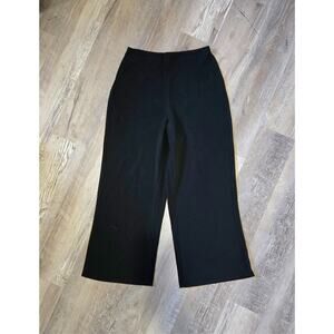 House of Harlow 1960 women's pants/trousers. Size 6. They are ankle length with a fun wide leg style. Dark black. Designed with a stretchy waist band and a pull-on style. In excellent condition, only worn a couple times. They have a nice, sleek black outer material with a soft silky inner material. They are high-waisted with an elastic band for comfort and flexibility. Office, career, professional, quiet luxury, affordable, city, wedding, etc. Please note that the first picture is for reference only and may not be exact to the item being sold.