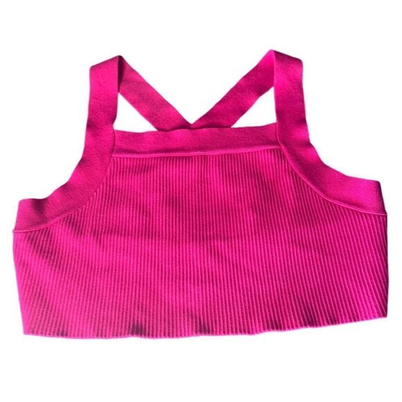 House of Harlow 1960 Luxe Essentials Wide Strap Cross Back Ribbed Crop Top in Hot Pink, Size Large. Super soft and comfy, made of quality fabrics. Brand new and never worn. New with tags.