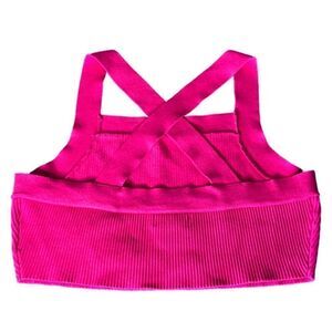 House of Harlow 1960 Wide Strap Cross Back Ribbed Crop Top, Hot Pink. Large. NWT