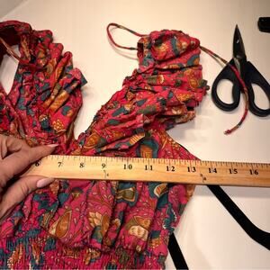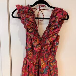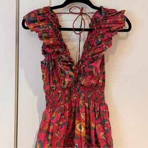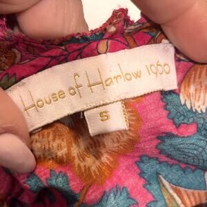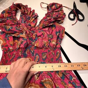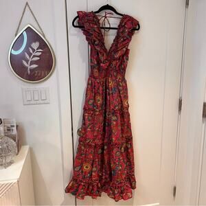 House of Harlow 1960 Wine Floral Ruffled Midi Tiered Dress Small