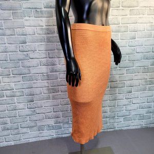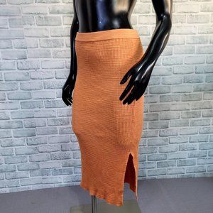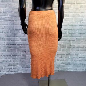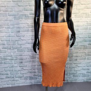 House of Harlow 1960 Womens S Orange Ribbed Knit Stretchy Pencil Skirt. Elastic waistband, Side slit. NO pockets