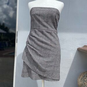 House of Harlow 1960 Wool Houndstooth Strapless Dress