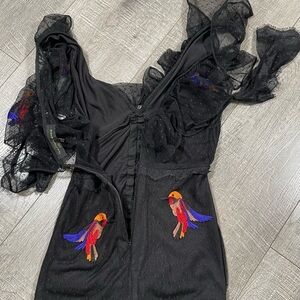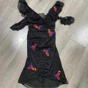 House of Harlow 1960 X REVOLVE Black DRESS ruched Embroidered birds Size XS