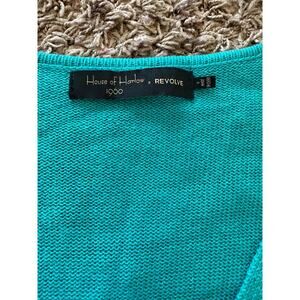 House of Harlow 1960 X Revolve Blue Teal Fringe V Neck Knit Sweater Top Size S