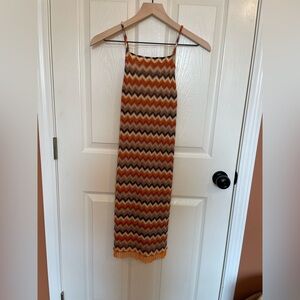 Zigzag pattern, tassels, boho vibes, halter neck line, perfect beach coverup