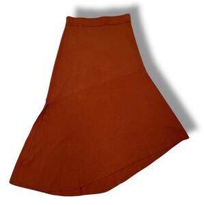 House of Harlow 1960 rust sweater asymmetrical tiered skirt with side slit and wide elastic waistband.