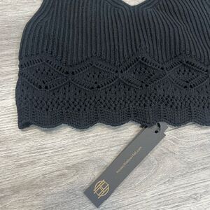 House of Harlow 1960 black Crop Top only Crochet ribbed v-neck Knit NWT XS