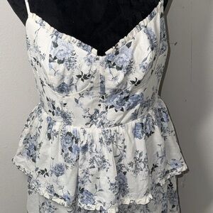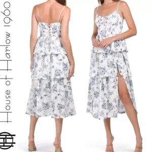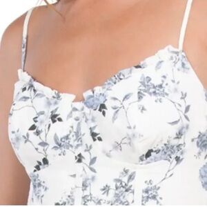 House of Harlow 1960 linen blend tiered floral toile lace up corset dress Sz M