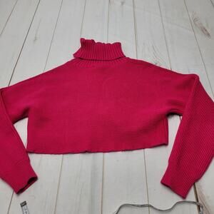 Soft and stylish House of Harlow turtleneck sweater! Crop fit in a magenta pink color (My photos make it look a little redder but in person I'd say its a true magenta pink). In excellent condition, size large.
