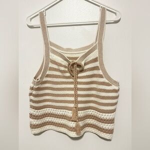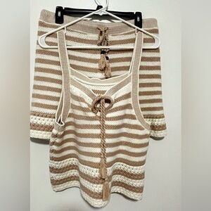 House of Harlow 1960 open knit Tan sweater short set. Monrow design style. Med