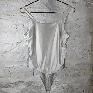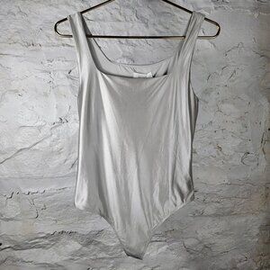 House of Harlow 1960 scoop neck bodysuit thong lined soft silky silver size med