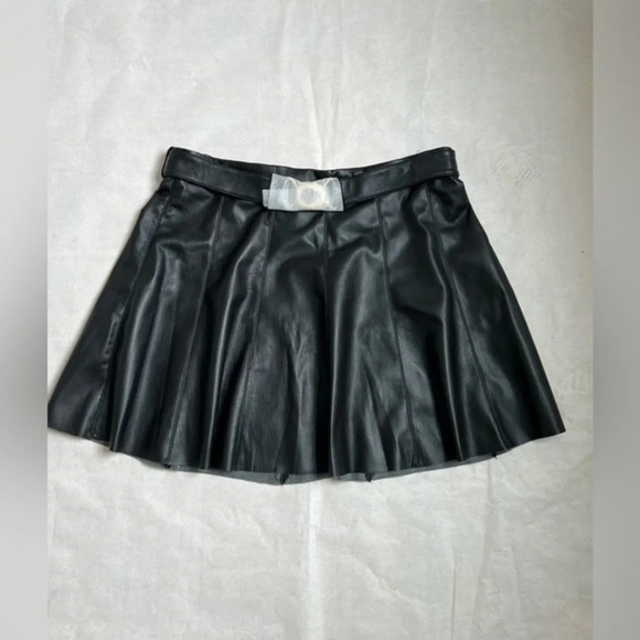 House of Harlow 1960 vegan leather skirt Black Skater Mini Belt & Buckle Sz L