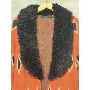 House of Harlow 1960 x REVOLVE Cardigan Womens Small Orange Faux Fur Collar Boho
